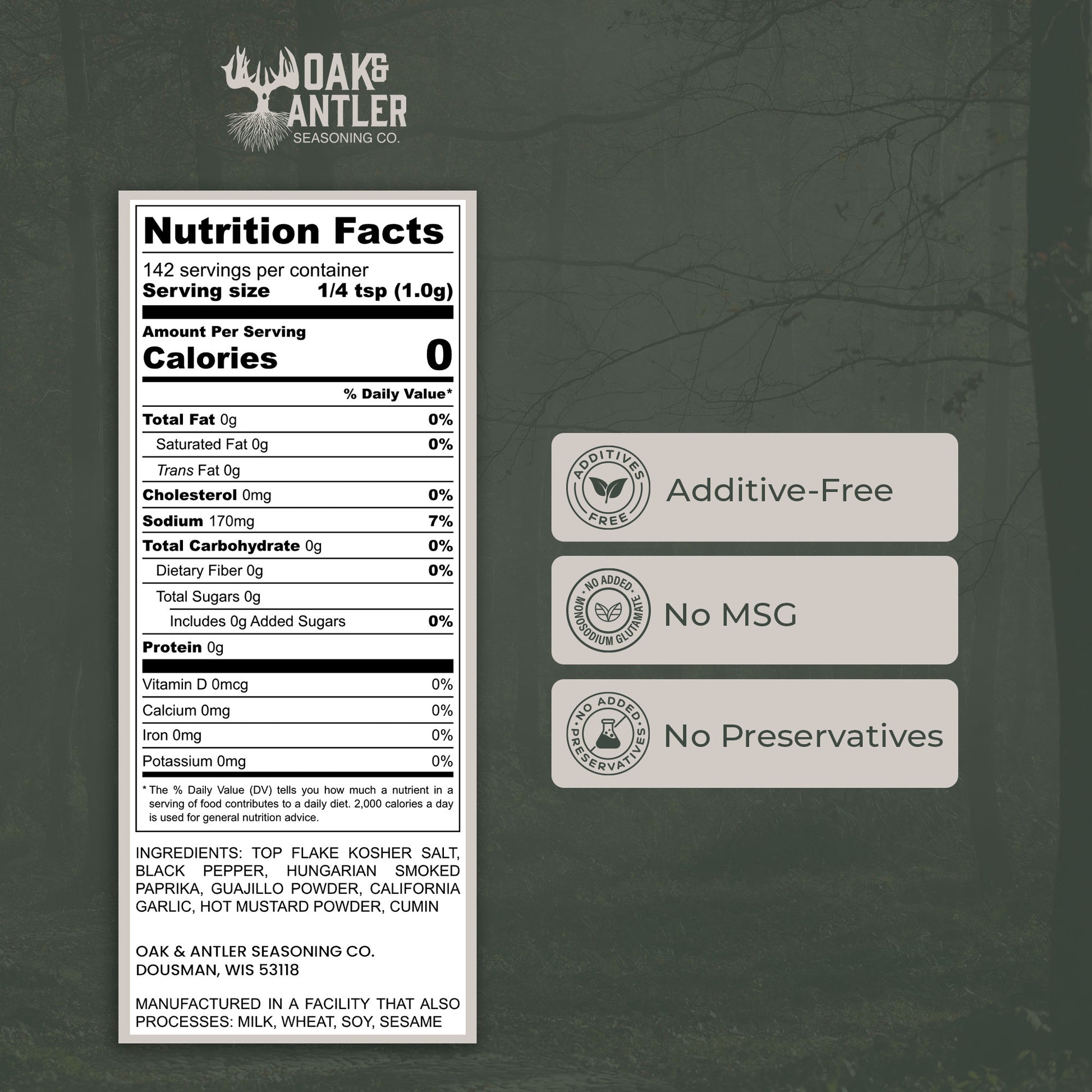 This blend takes the best of Southwestern chiles, classic BBQ spices, and bold aromatics to deliver maximum color, crust, and complexity. It enhances smoke without overpowering the meat—and works on both low‑and‑slow and high‑heat grilling.