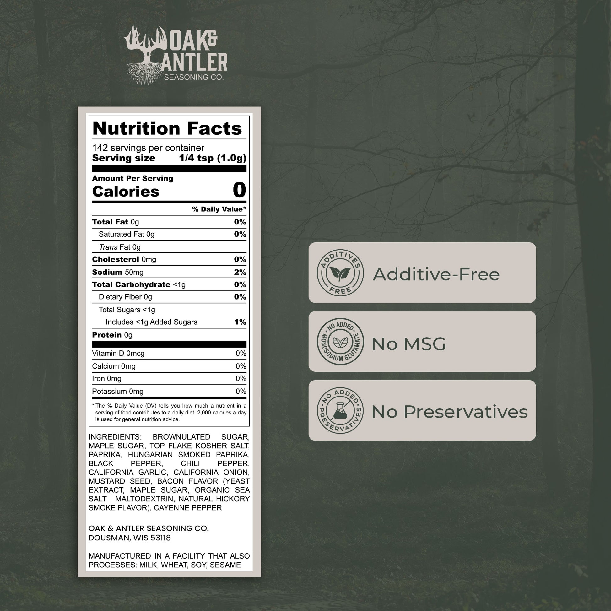 Maple sugar and brownulated sugar create an incredible caramelized crust. Bacon flavor adds smoky richness without needing actual bacon grease. Chili pepper and cayenne bring heat that balances the sweetness, while savory aromatics keep the blend grounded and endlessly craveable.